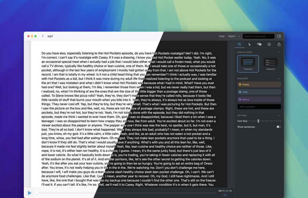 • Transcribe podcasts by combining single track audio for each host (beta)