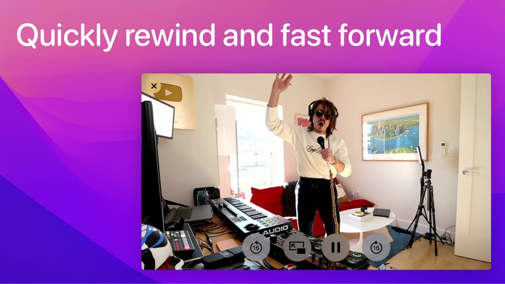 Pippo adds seeking controls to your Picture in Picture window! On macOS the Picture in Picture video player does not have seek backwards and forwards controls. I use those a lot on iOS so I wanted to have them on macOS as well.