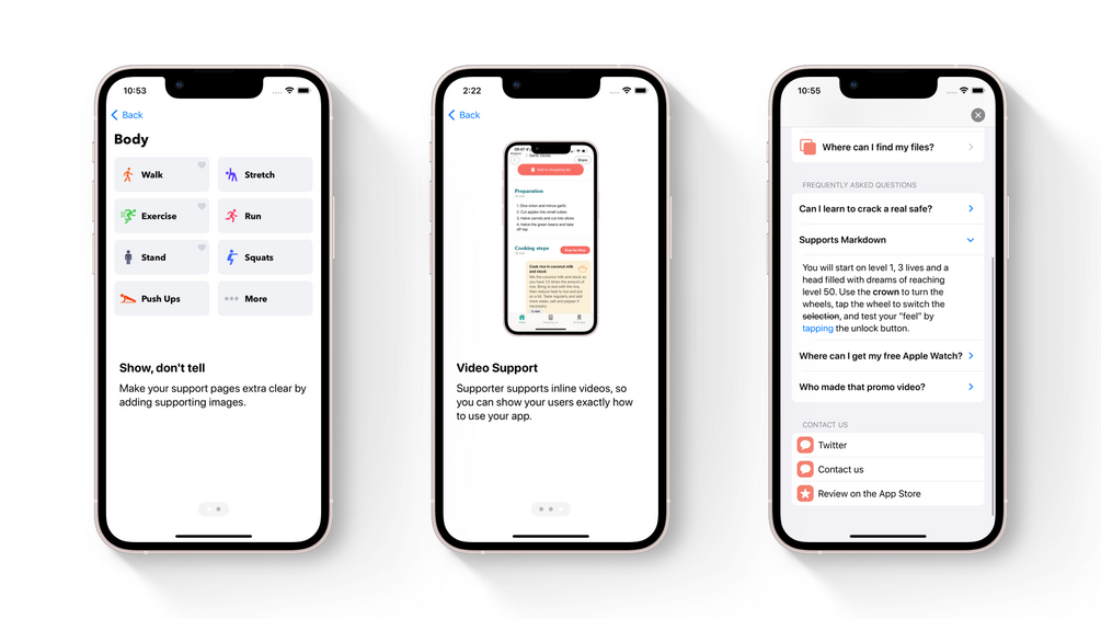 Supporter is a complete support section that you can add to your app in under 30 seconds. It's fully customisable, localisable and easy to edit from a local or remote JSON. It includes (optional) private analytics and lets you add images and videos to your support pages.